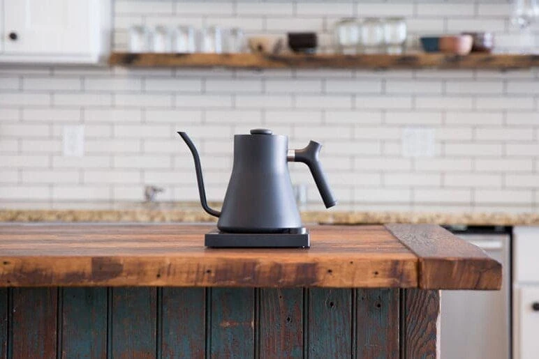 Featuring precision pour spout, variable temperature control, LCD screen, 60-minute hold mode, a brew stopwatch, and a small, minimalist base