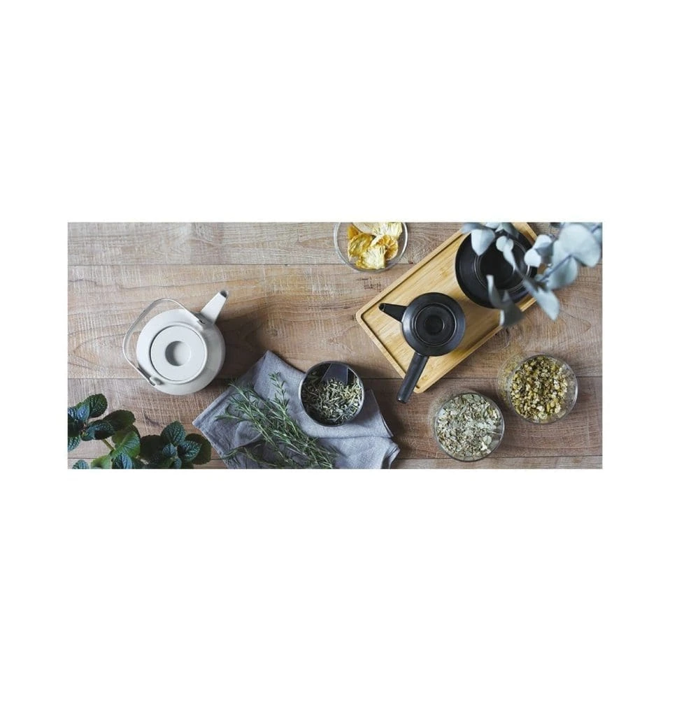 Bamboo tray with a lip around the edge for easy lifting and carrying and a urethane coating that both resists spills and prevents slipping. Looks great with anything on top but was designed to create a loose leaf tea set for one with the rest of the Leaves to Tea range