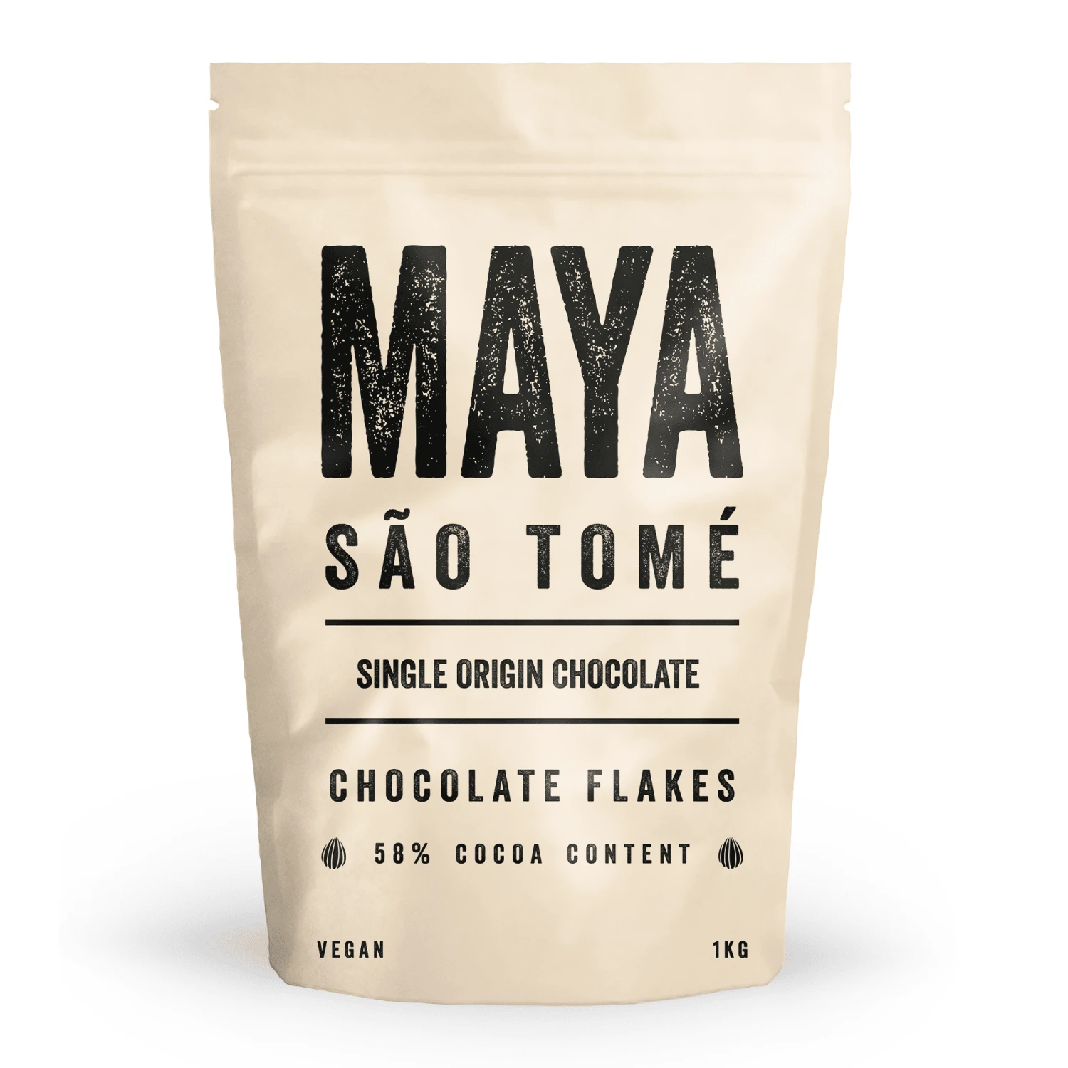 Maya Sao Tome 58% Cocoa Flakes – 1kg Resealable Bag – Luxury Single Origin Hot Chocolate