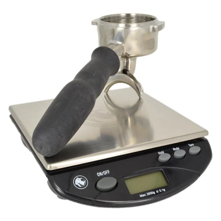 They are big enough to hold a portafilter but also weigh up to 2kg with a 0.1g accuracy.